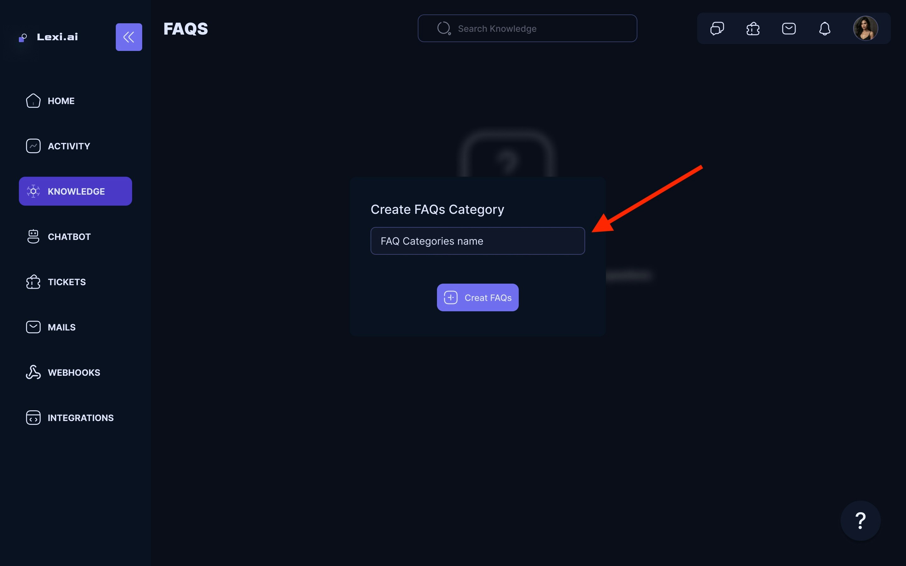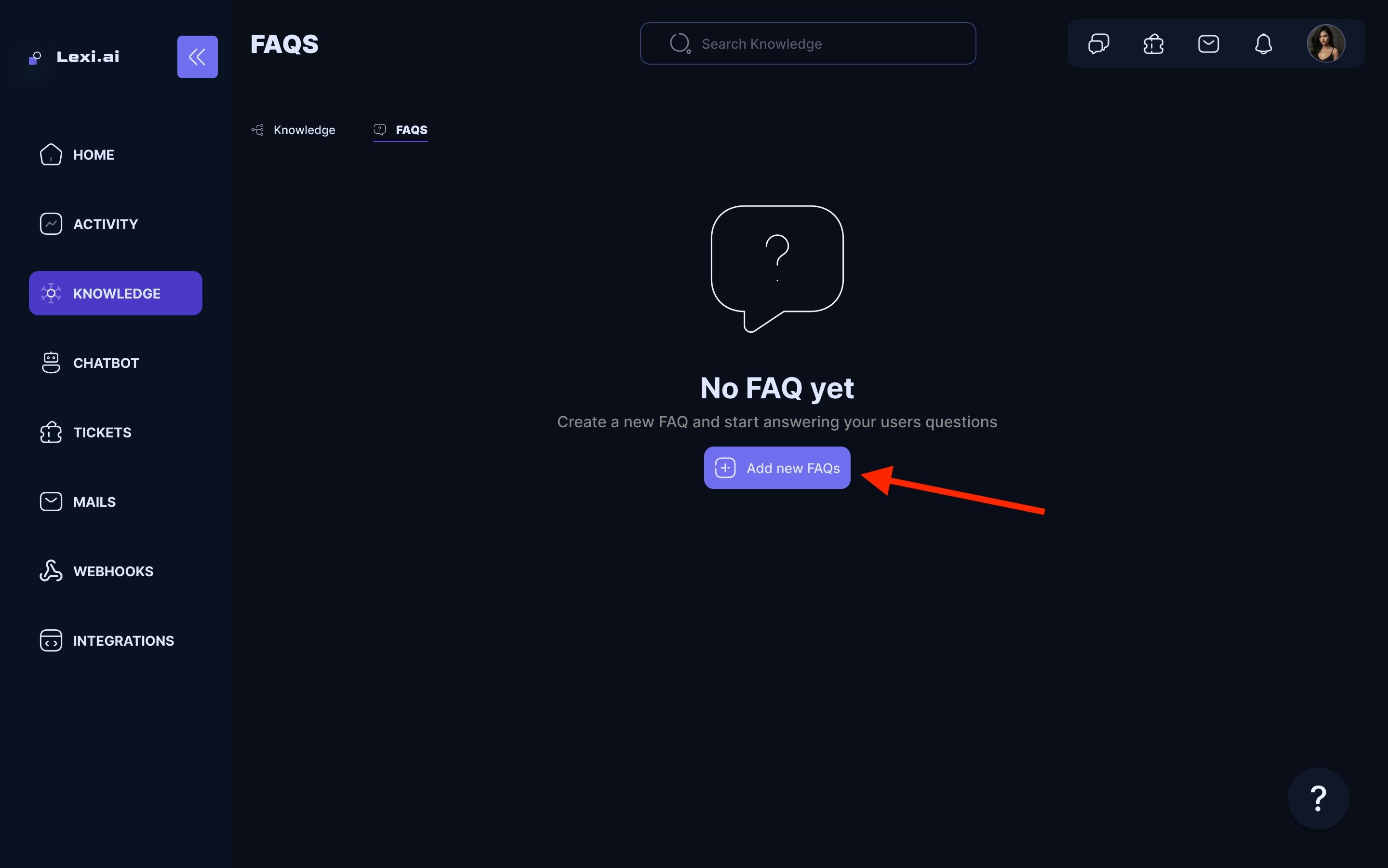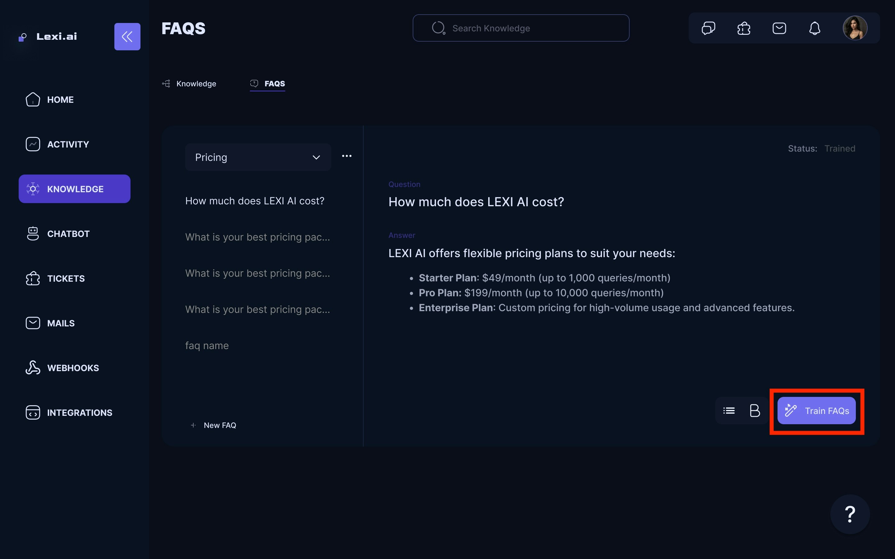 - On your LEXI Home screen, Navigate to FAQs under the Knowledge Base section.