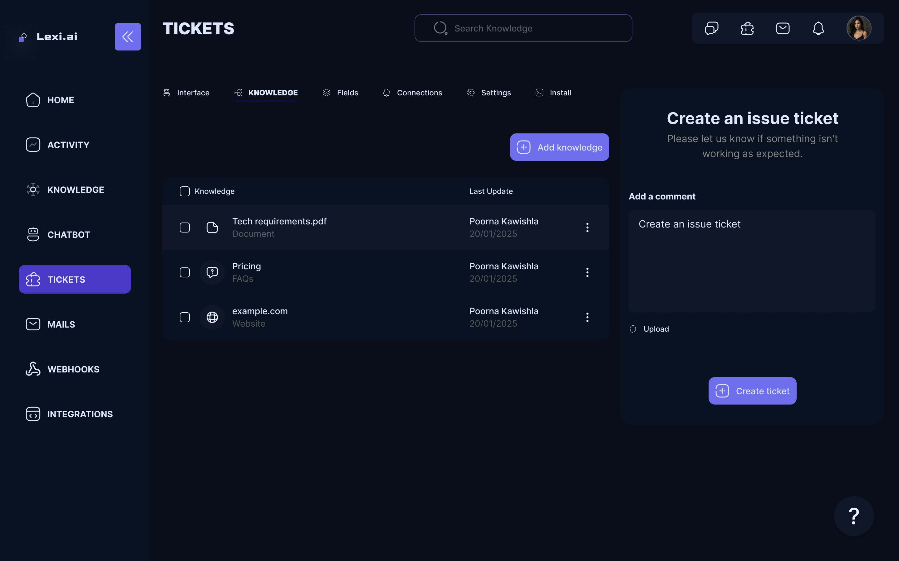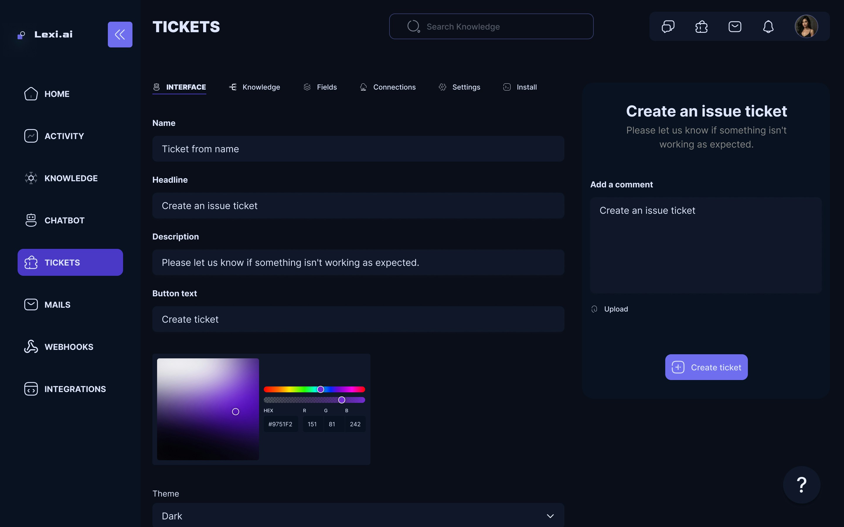Congrats! Your newly created Ticket Form is connected to the chatbot. 🥳