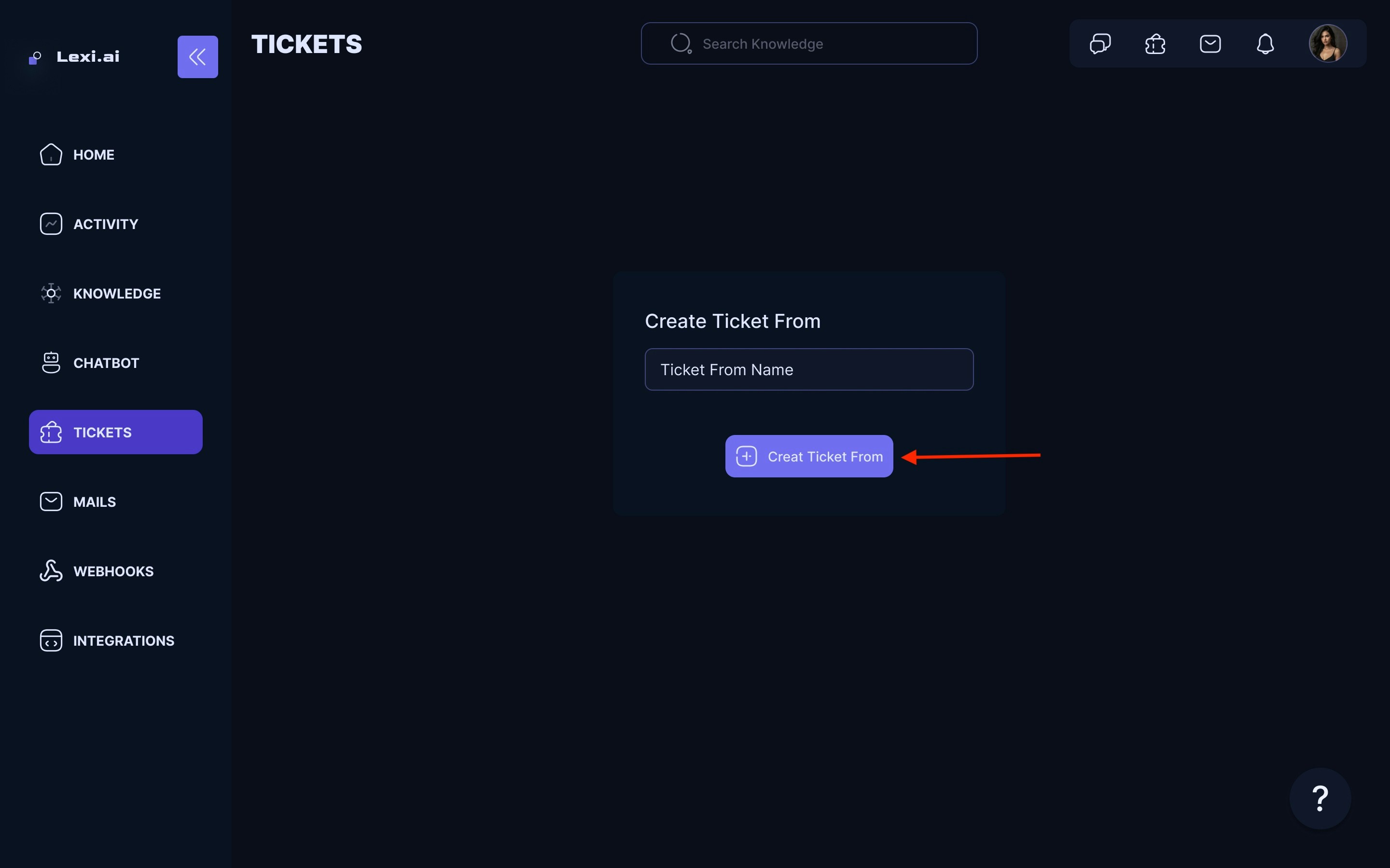 To connect a ticket form with your AI Chatbot, you first need to create one- Navigate to Ticket Forms for your Home screen.